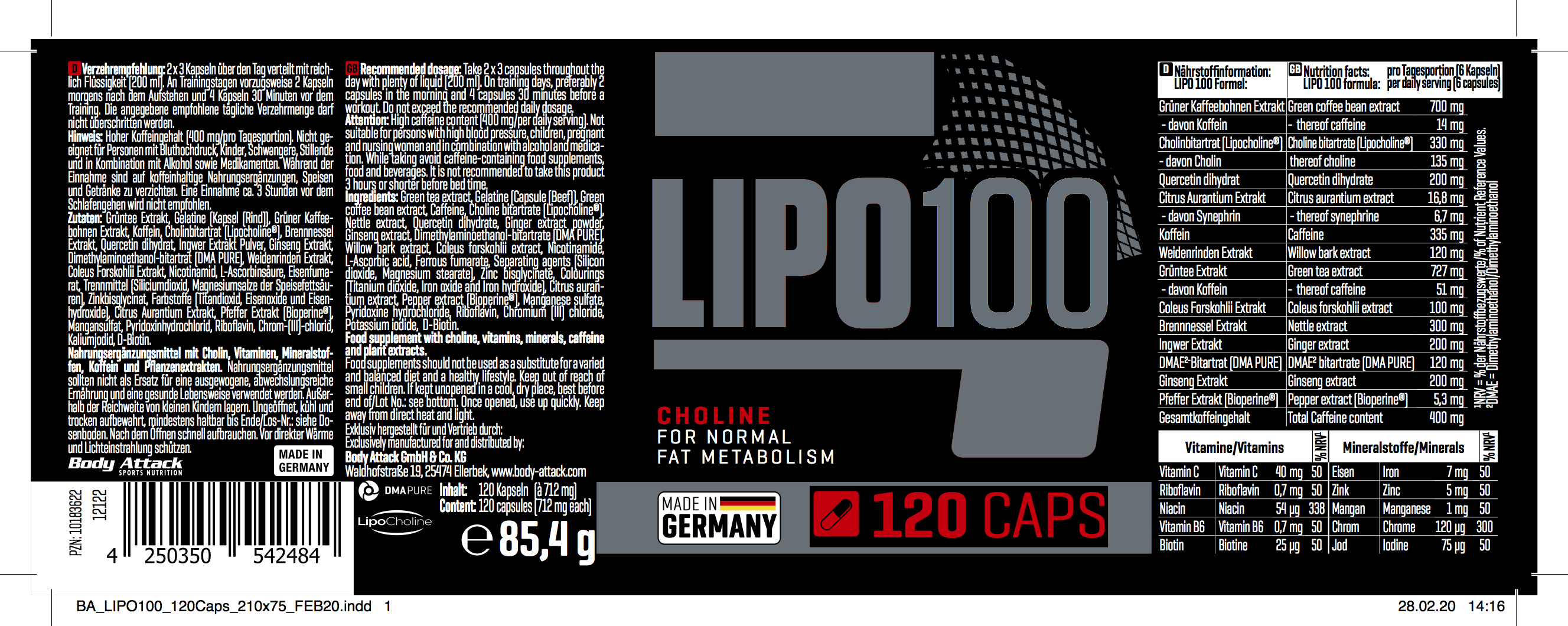 BODY ATTACK Lipo 100 - Fatburner mit neuer verbesserter Formel